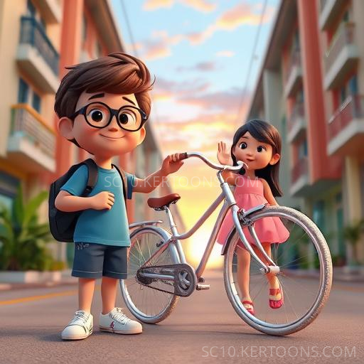 As the rainbow faded, the bicycle gently floated back down, landing softly near Benny’s home just as the sun dipped below the horizon. The magic shimmered away, leaving only the warm glow of friendship and adventure. Benny and Lily looked at each other, smiles wide and hearts full. They realized that the real magic wasn’t just in the bicycle, but in their courage and kindness. From that day, they knew that every new adventure begins with believing in yourself and helping others along the way.
