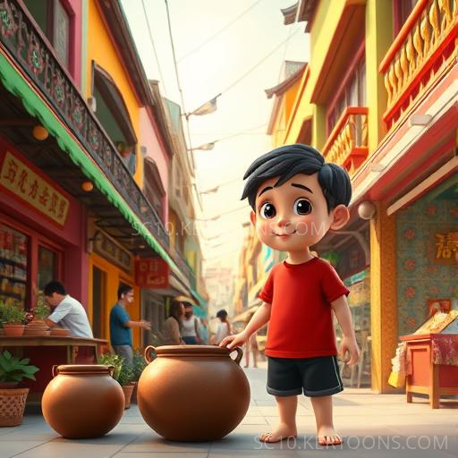 In a vibrant neighborhood filled with colorful shophouses and the aroma of satay and laksa, Ah Boy eagerly helps his grandma at her tiny shop. One sunny afternoon, she whispers about a mysterious clay pot hidden nearby that can grant a wish. Ah Boy’s eyes sparkle with curiosity as he dreams of making his grandma smile. With a heart full of hope, he sets off on a tiny adventure, imagining the magic waiting just beneath the bustling streets and quiet backyard. He feels a warm breeze and hears the distant hum of the city, knowing that sometimes, the greatest treasures are found in the simplest places, like home and kindness.