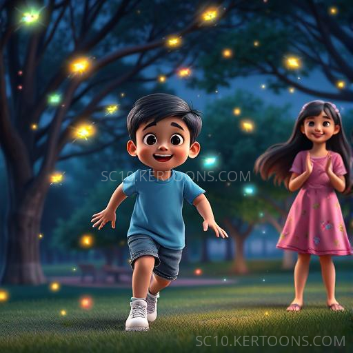 Gently, Ravi touched the glowing fireflies, and they pulsed with a soft, welcoming light. Suddenly, they revealed themselves as tiny, glowing fireflies that loved to play hide-and-seek in the night. Lina clapped happily, proud that Ravi had been brave. Ravi felt a warm glow inside—he had taken a chance and made new friends. From that night on, the fireflies became his special friends, lighting up his adventures in the park. Ravi learned that being brave means trying new things, especially with friends by your side. The neighborhood was brighter and happier because of their magic, and Ravi felt more confident to explore the world around him.